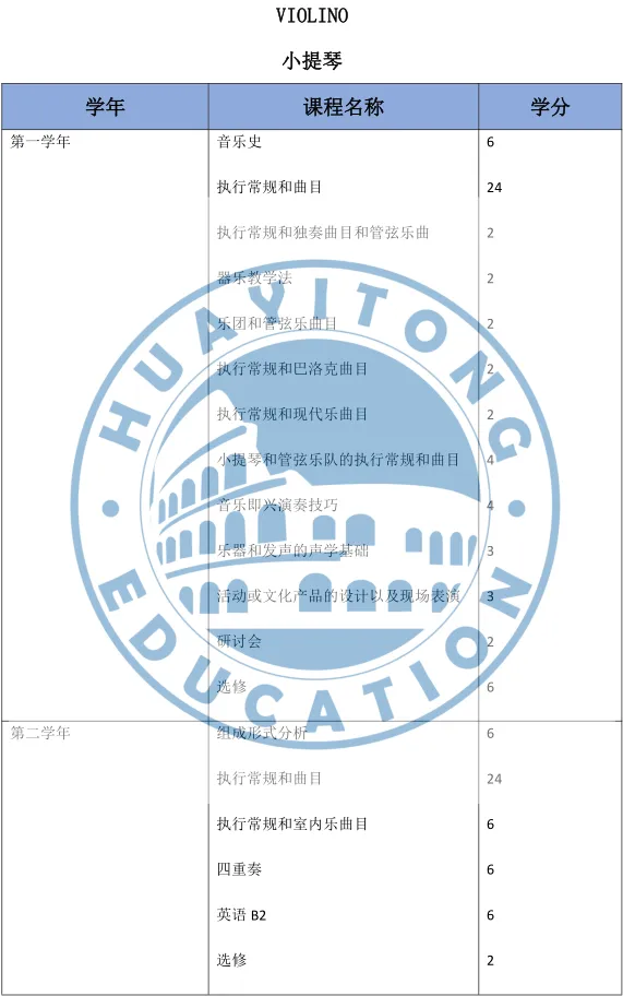 电子音乐、文艺复兴风格及巴洛克风格声乐、大琴键及古键盘乐器-表演方向、管风琴、低音、声乐、作曲、音乐教育-声乐方向、长笛、双簧管、小号、长号、中提琴、低音古提琴、大提琴、次中音号、巴洛克提琴、钢琴、管乐乐团谱曲、小提琴等等