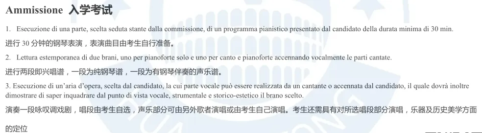 其中语言能力是极为重要的(音乐学院对语言的要求都比较高),如果语言(意大利语B2)不过关,你甚至不能进入到入学考试的专业测试这一步。