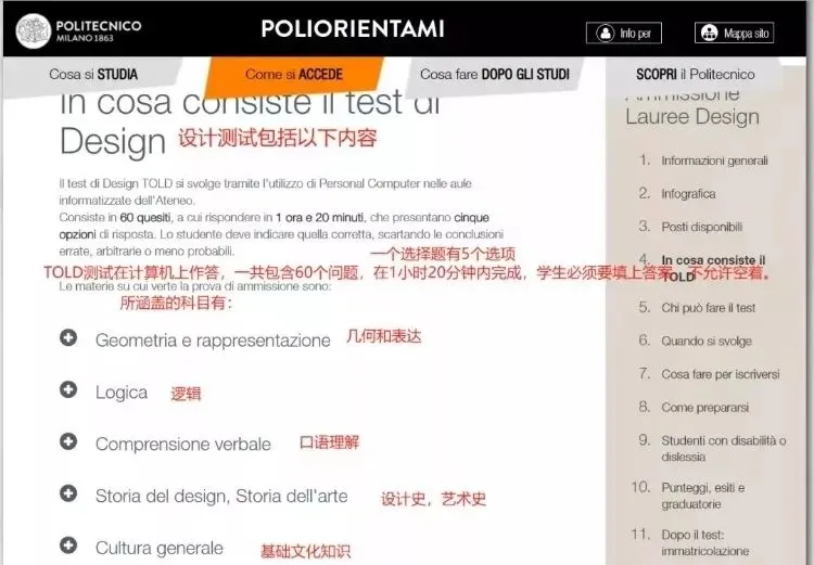 TOLD米兰理工大学设计类入学考试