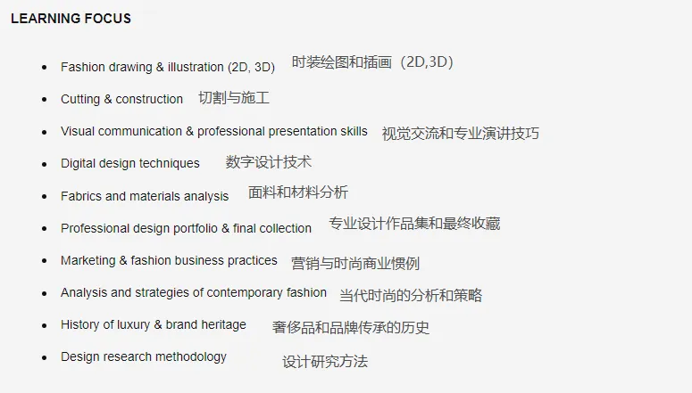 服装不单单是创意设计,更是要做成品牌卖出去。所以专业也会设计时尚方面,生产,零售,消费者习惯中的手工艺,和潮流趋势。