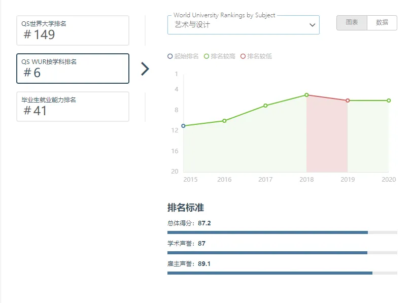当然,我们本期分析的是服装设计专业,也需要看一下专业的排名。米兰理工的艺术设计类专业世界排名为第6位。