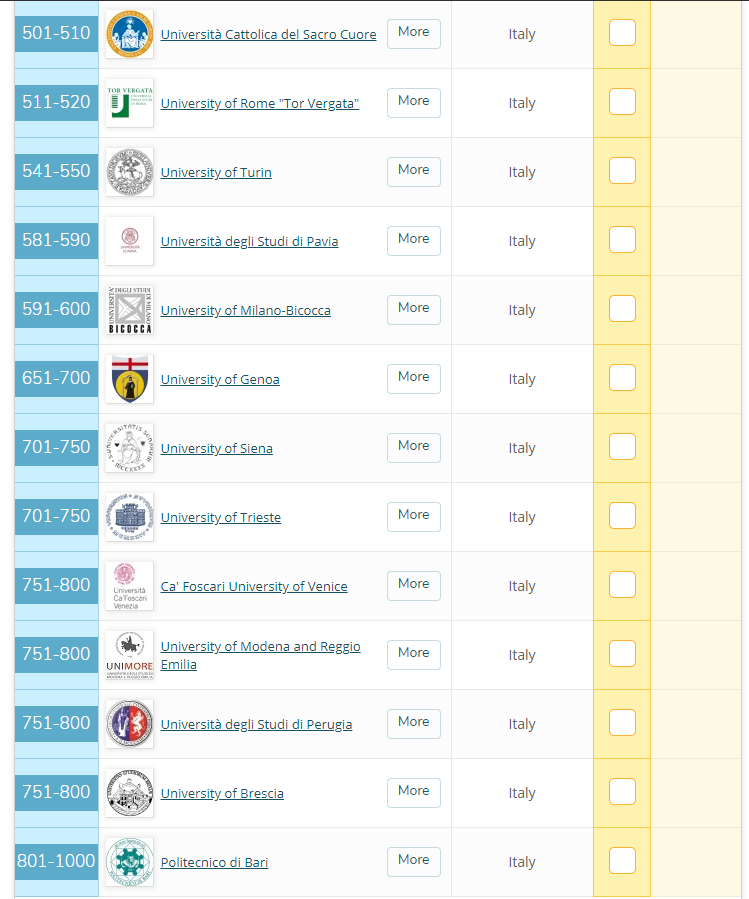 下面我们来看一下与国内同等排名的意大利大学有哪些。
